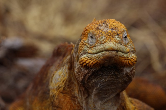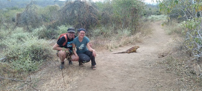 Die weiblichen Echsen sind schwarz gefärbt und etwas kleiner. Jungtiere sieht man nicht, da diese erst im Alter von etwa fünf Jahren aus den Erdhöhlen kriechen. Bis dahin ernähren sich diese von Insekten und werden dann zu Vegetariern. Bei unserem Rundgang konnten wir einige der Landechsen sehen und auch noch ein paar Vögel wie den Fliegenschnäpper und ein paar Darwinfinken.