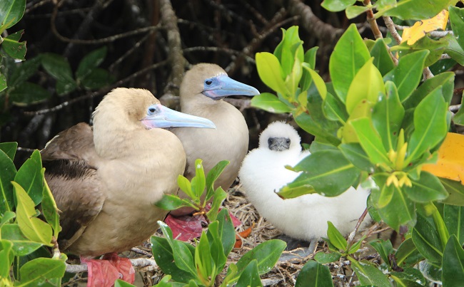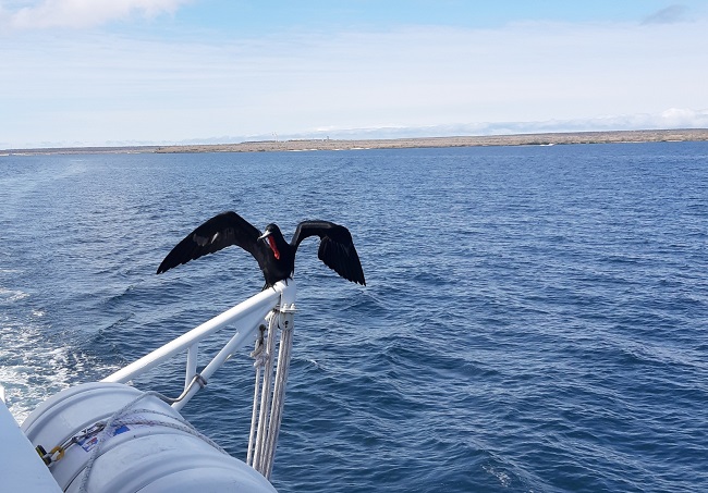 Der Tag endete mit einer Fahrt rund um die Insel Daphne, eine unbewohnte und und unbegehbare Insel aus sehr brüchigem Stein, die Heimat vieler Vögel ist. An der Finkenpopulation dieser Insel konnten Forscher die bemerkenswerte Anpassungsfähigkeit an ihre Umwelt feststellen. In nur einer Generation änderte sich die Schnabelgröße und hatte sich an das veränderte Nahrungsangebot, das aus größeren Samen bestand, angepasst. Und in nur einer weiteren Generation, mit ursprünglichen Nahrungsangebot, wieder zurück.
