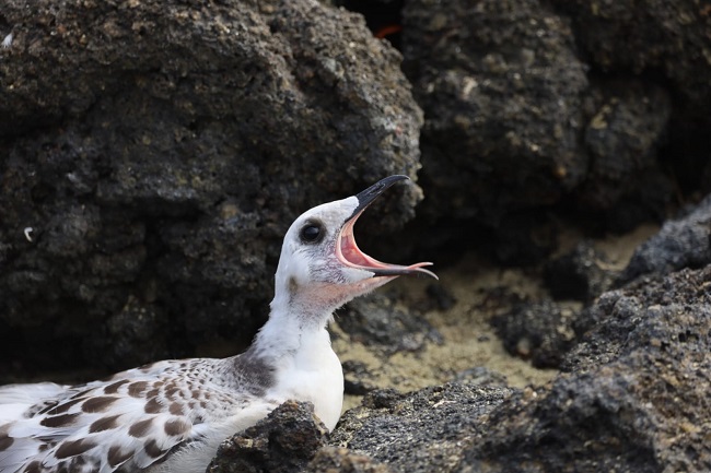 Weitere tolle Sichtungen waren die Gabelschwanzmöve (auch mit Jungen), die seltene und leider im Bestand gefährdete Lavamöve, die Galapagos Taube, Sturmschwalben, die kleine Sumpfohreule bei der Jagd, der Lavareiher, Krabbenreiher.