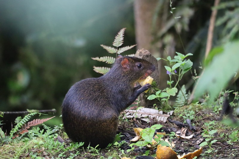 Auch ein Aguti kommt regelmäßig vorbei, um sich Bananen zu holen.