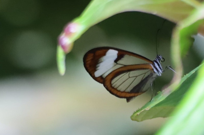 Wir kommen an einem Gürteltierbau vorbei und ein Schmetterling mit transparenten Flügeln fliegt uns über den Weg.