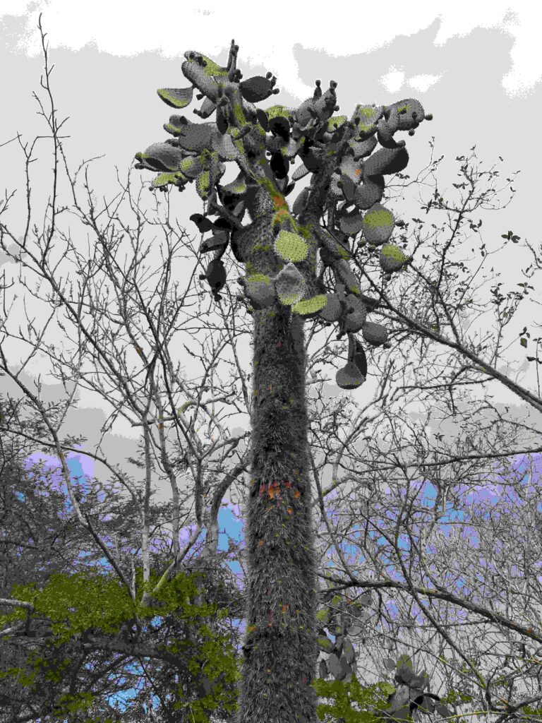 Der Weg führt uns in großer Hitze durch eine Vegetation mit wundersamen Kakteen, die einen baumähnlichen Stamm aufweisen.