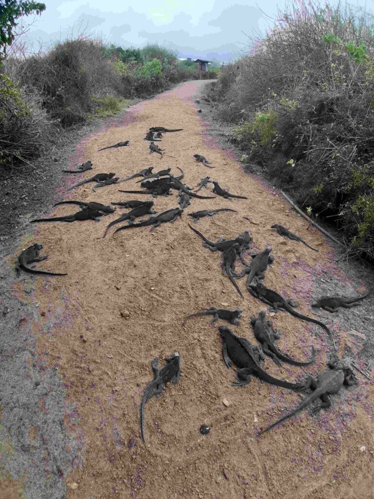Manche Wege werden von den Meeresechsen regelrecht belagert, so dass ein Durchkommen für den Menschen schwieriger wird.